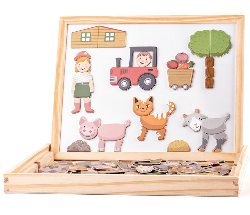 WOODY Dvostrana tabla za crtanje sa priborom i životinjama 91214