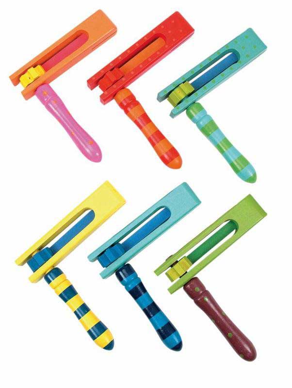 Drvena čegrtaljka je odličan dodatak svakom muzičkom bendu, a može biti i navijački rekvizit. U svakom slučaju, to je predmet koi izaziva osmeh! Uzrast: 3+.