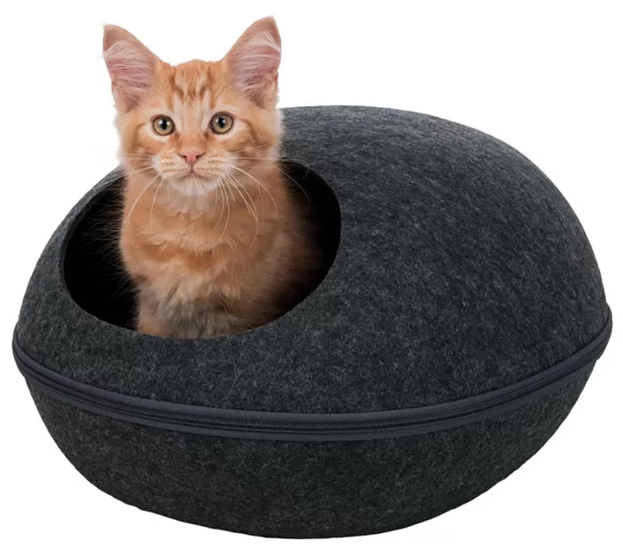 Kućica za mačku koja se pomoću rajsferšlusa lako pretvori u otvoren krevet, onako kako se vašem mezimcu sviđa u tom trenutku. Unutra je mekani plišani jastuk. Dimenzije: 40 × 24 × 47 cm.