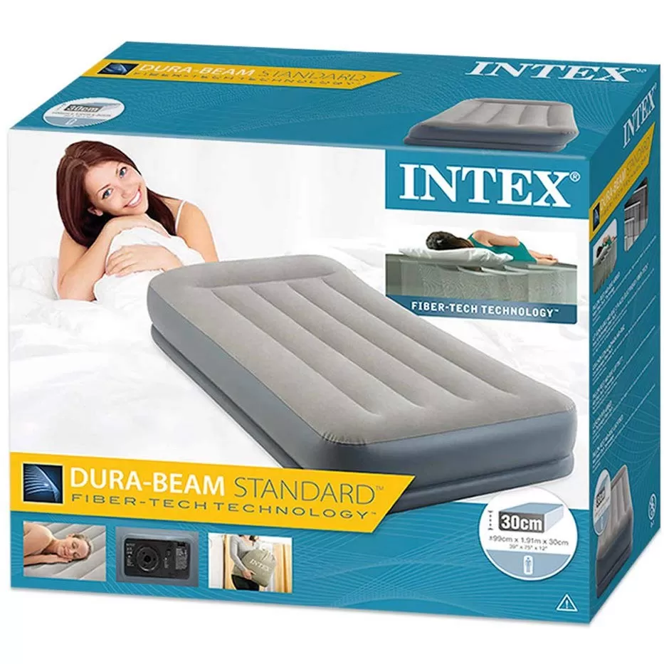 Intex 64116 Dura-Beam Mid-Rise Krevet Na Naduvavanje 99x191x30 cm Sa Električnom Pumpom i Uzglavljem