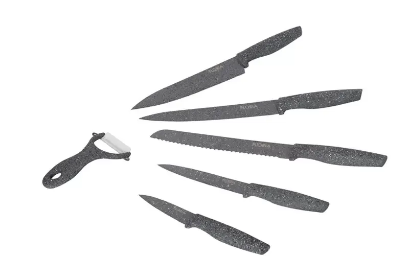 Set kuhinjskih noževa Floria sadrži pet noževa različite primene i jednu ljuštilicu za voće i povrće.