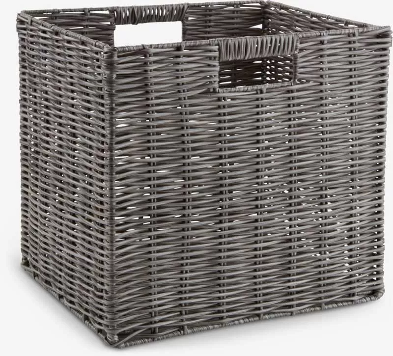 Praktična pletena korpa sa ručkama, za odlaganje sitnica i dekoraciju enterijera. Izrađena je od recikliranog polietilena i čelika. Siva boja u kombinaciji sa dizajnom učiniće da izgled prostorije u kojoj se nalazi dobije notu elegancije.