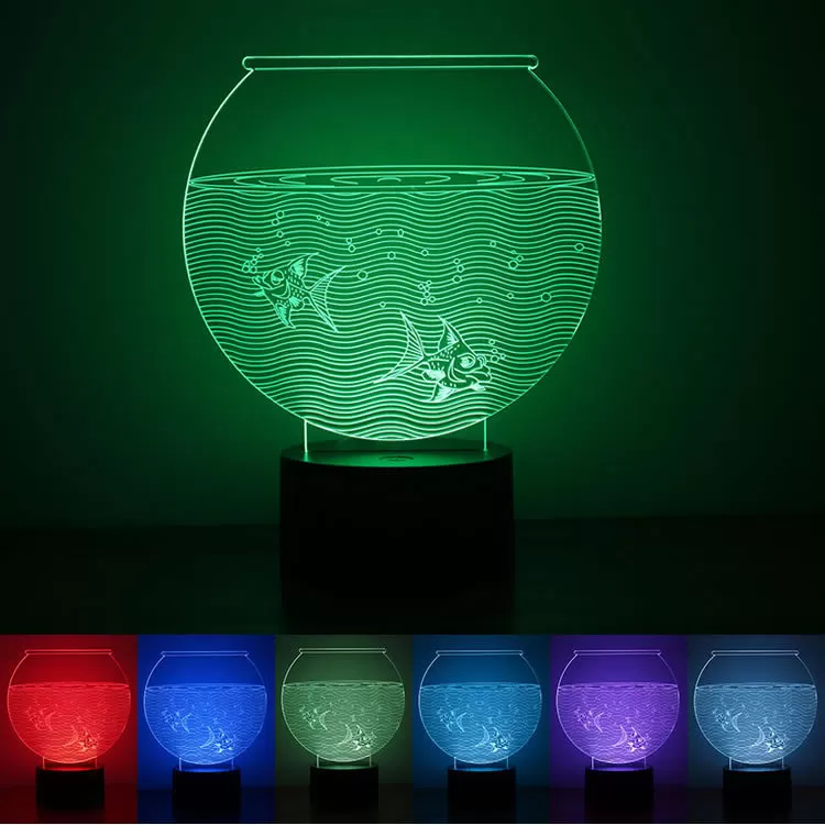 3D LED Lampa u 8 boja Black Cut Illusions Aquarium Multicolor