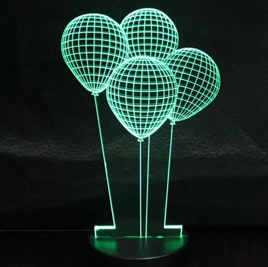 LED Lampa 3D - noćno svetlo - Illusions by Black Cut Green Balloons