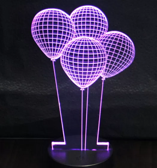LED Lampa 3D - noćno svetlo - Illusions by Black Cut Purple Balloons