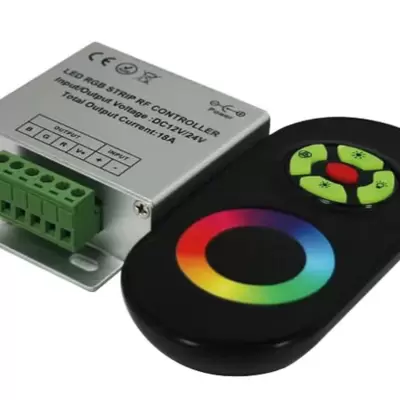Kontroler za RGB LED traku sa touch kontrolom preko daljinskog upravljača. Ima brojne programirane kombinacije efekata. Izlazna snaga ovog RF...