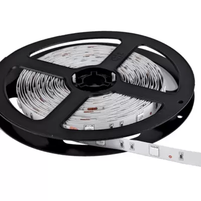 Traka sa LED diodama crvene boje. Traka ima 60 dioda po metru, a snaga joj je 14.4W po metru. Na poleđini se nalazi lepljiva 3M traka za postavljanje.