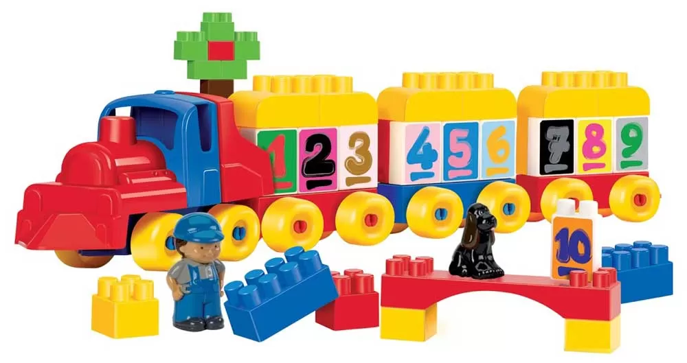 Lokomotiva, vagoni, mašinovođa, pas, kocke sa brojevima