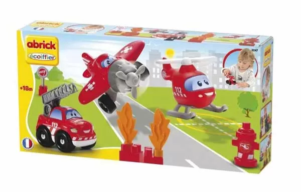 Set sadrži: automobil, helikopter, avion, hidrant i 2 kocke koje predstavljaju vatru