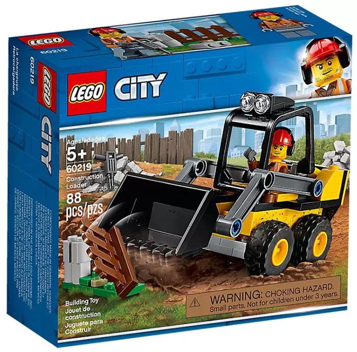 U pakovanju: minifigura građevinskog radnika, bager sa kašikom koja se podiže, ograda sa betonskim stubovima, ručna bušilica za beton
