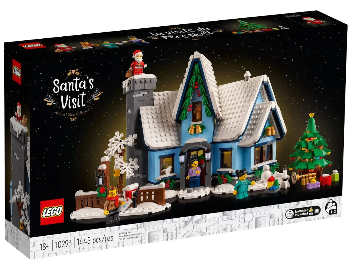 U pakovanju: 4 minifigure (Deda Mraz, muškarac, žena, devojčica), kućica pod snežnim prekrivačem, sa božićnim dekoracijama (čarape na kaminu, tanjir sa kolačima i mleko za Deda Mraza, sveće, pokloni, cveće božićna zvezda itd), dimnjakom kroz koji Deda Mraz može da prođe i 4 prostorije (spavaća soba, dnevna soba, kuhinja, trpezarija), okićena jelka koja svetli kada se pritisne, mnoštvo dodatnog asesoara, uputstvo za sastavljanje