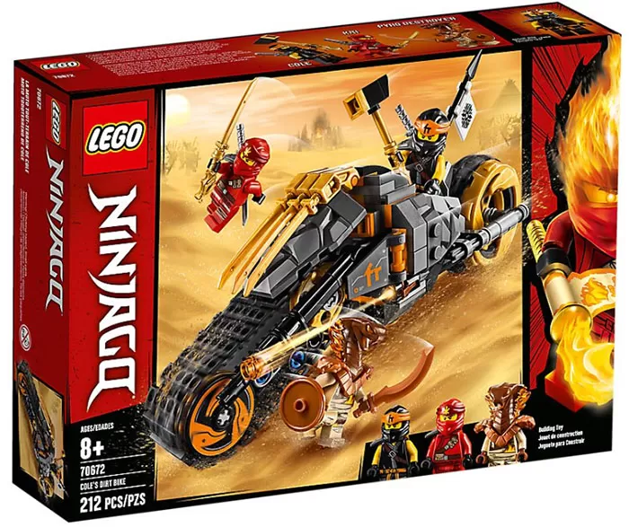U pakovanju: minifigure Kola, Kai i Pyro Destroyer, oklopljeni motor Dirt Bike sa ispaljivačima, katane, šurikeni...