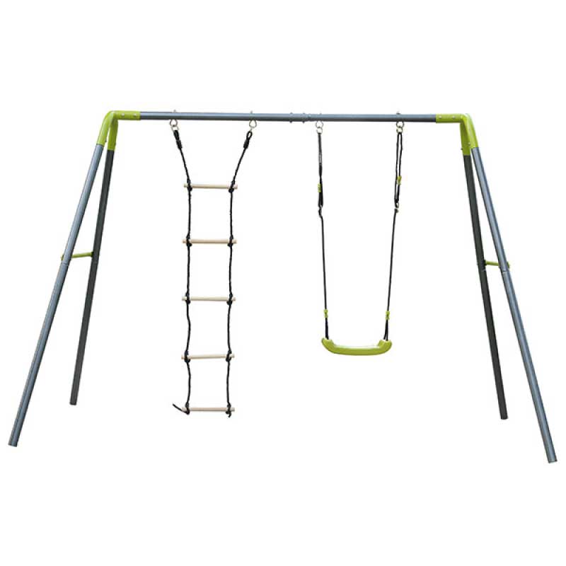 Dečija igraonica za dvorište ima klasičnu ljuljašku sa plastičnim sedištem i dodatnu penjalicu u formi merdevina. Namenjena je za decu težine do 50kg, uzrasta između 3 i 6 godina.