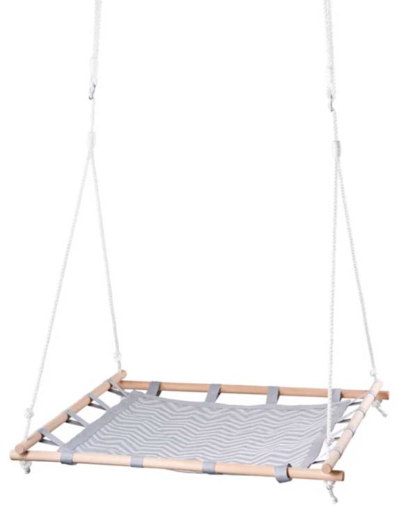 WOODY ljuljaška za decu Square je udobna i izdržljiva, ima nosivost 100kg i dimenzije 100x100cm. Izrađena je od platna.