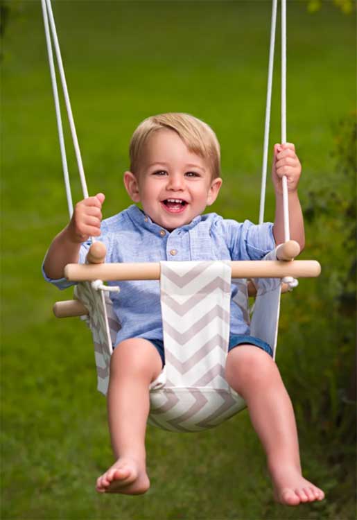 Udobna i prijatna, platnena WOODY klasična ljuljaška za bebe starije od 6 meseci, koje već samostalno sede, postaće im jedna od omiljenih igračaka i dugo će to biti. Nosivost joj je 35kg.