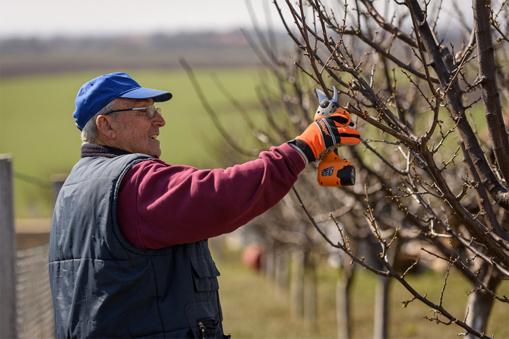 Akumulatorske makaze za orezivanje voćnjaka. Isporučuju se sa dve baterije i mogu raditi do 3 sata u kontinuitetu.