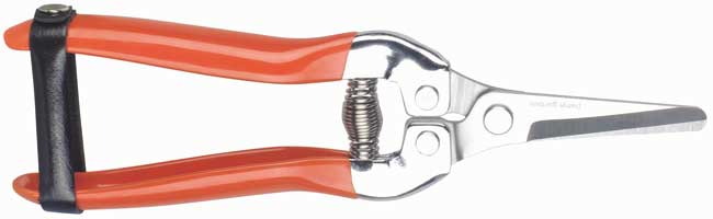 Makaze za orezivanje vinove loze, dužine 17,5cm. Sečivo je izrađeno od ojačanog čelika, rezne ivice su induktivno kaljene.
