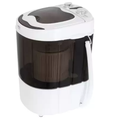 Kompaktna mini mašina za pranje manjih količina rublja. Kapacitet - 3kg. Centrifuga. Program pranja traje 15 minuta. Pogodna za nošenje i na...
