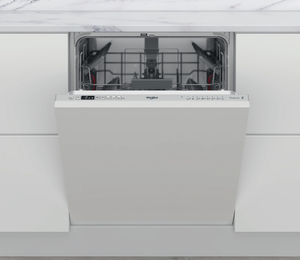 Whirlpool WI 7020 P potpuno ugradna mašina za pranje sudova sa kapacitetom od 14 kompleta, 8 programa, 6th Sense tehnologijom i tihim radom od 46 dB(A) pruža vrhunsku efikasnost i udobnost za savršeno čisto posuđe.