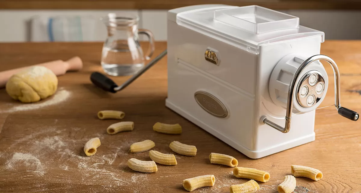 Regina je ručna mašina Marcato namenjena za pretvaranje testa u 5 različitih oblika kratkih i dugih testenina: Bucatini, Fusilli, Maccheroni, Maccheroncini i Rigatoni.
