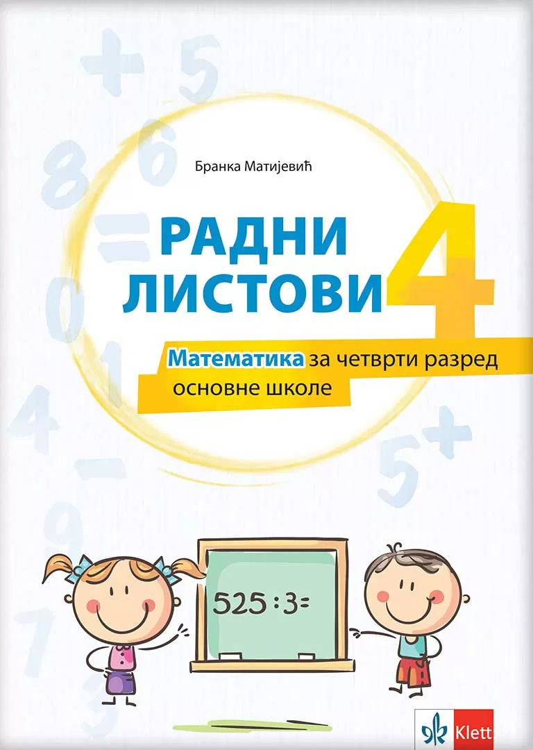 Radni listovi uz udžbenik iz matematike za četvrti razdred osnovne škole, odobreni rešenjem Ministarstva prosvete. Autorka: Branka Matijević. Izdavač: Klett.