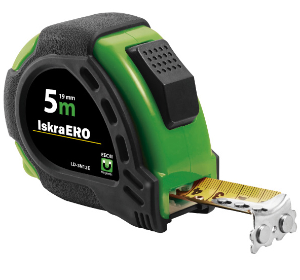 Ručni metar sa žutom metalnom trakom dužine 5m, na čijem kraju se nalazi namagnetisana kukica. Metar ima koču za džep i uže za ruku.