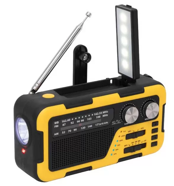 Multifunkcijski radio prijemnik sa punjivom baterijom koja se može dopuniti preko solarnog panela, USB-C priključka ili pomoću ugrađene ručice generatora. Poseduje LED lampu, Bluetooth konekciju, SOS alarmnu sirenu, može da služi kao powerbank...