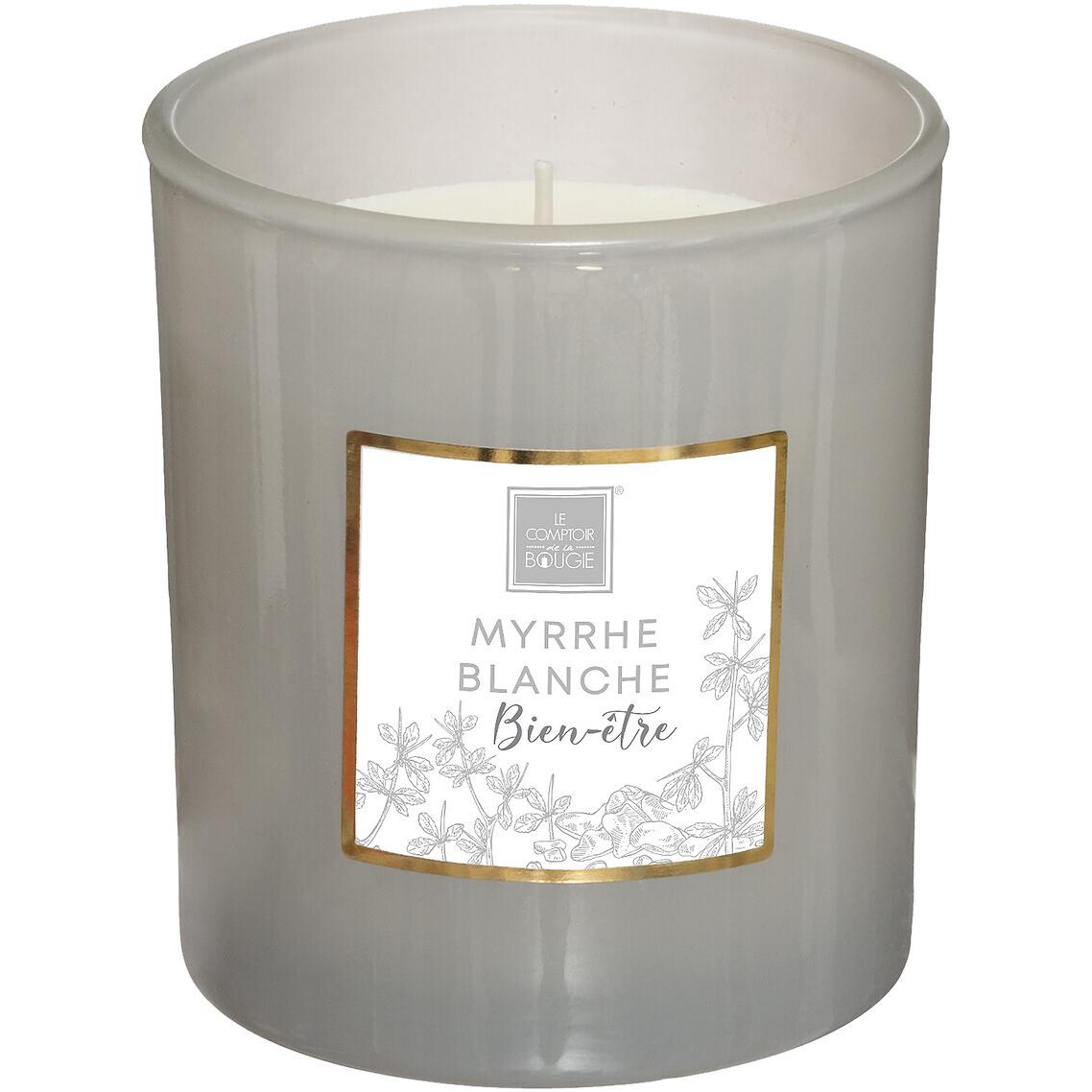 Dimenzije: 8 x 9 cm. Materijal: staklo, vosak. Boja: siva. Miris: bela smirna. Trajanje: 40h. Kolekcija: Mael. Brend: Atmosphera.