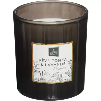 Dimenzije: 8 x 9 cm. Materijal: staklo, vosak. Boja: tamno siva. Miris: tonka, lavanda. Trajanje: 40h. Kolekcija: Mael. Brend: Atmosphera.