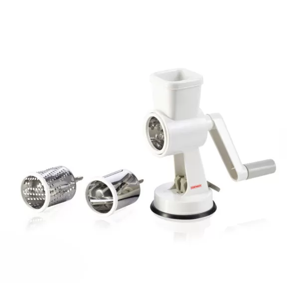 U setu se dobijaju 3 izmenjiva sečiva : za sitno i grubo mlevenje kao i za mlevenje na listiće