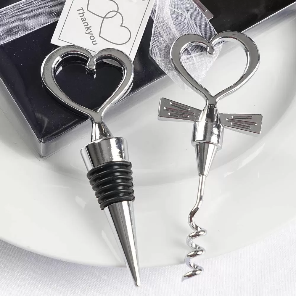 Sadržaj seta: otvarač i čep za vino u obliku srca