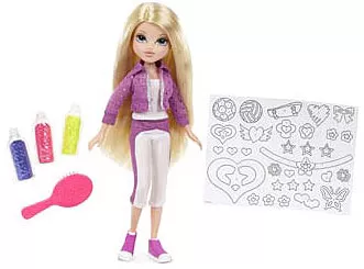 Pakovanje sadrži odevenu lutku, 25 stikera za dekorisanje odeće, 3 tube sa glitterom, četku za kosu