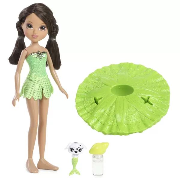 Pakovanje sadrži lutku odevenu u svetlucavi kupaći kostim, suknju pomoću koje lutka pluta, lutkinog ljubimca, bočicu sa penom za mehuriće