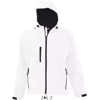 Muška jakna sa kapuljačom, izrađena od softshell materijala, štiti od vode, vlage i vetra. Tri džepa, zakopčavanje rajsferšlus. Lagana i topla.