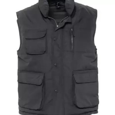 Moderan i praktičan prsluk za spoljne uslove: vodootporan, postavljen, sa visokom kragnom i 8 džepova. Uniseks model.
