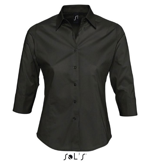 Trendy feminine košulja sa 3/4 rukavima i poluotvorenom kragnom sa jednim dugmetom. Kroja koji prati liniju tela. 97% pamuk. <b>Veličina S.</b>
