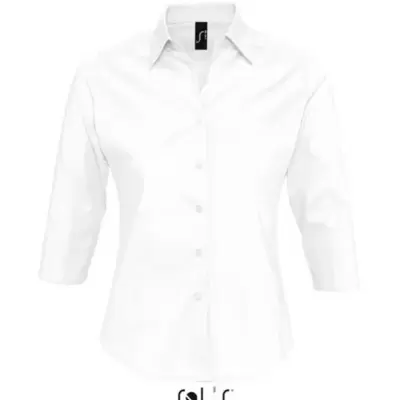 Trendy feminine košulja sa 3/4 rukavima i poluotvorenom kragnom sa jednim dugmetom. Kroj prati liniju tela. 97% pamuk, 3% elastan. <b>Veličina S.</b>