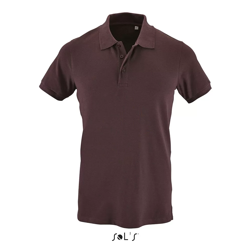 Sols Muška majica Model: Phoenix Men Boja: bordo Veličina: L (dužina od ranema do donjeg šava 72.75cm, širina između rukava, preko grudi, u predelu pazuha 55cm) Materijal: PIQUÉ 220, 95% combed Ringspun cotton (češljani pamuk), 5% elastane Kratki rukavi Kragna ojačana trakom oko vrata 3 dugmeta u boji majice Sečena i šivena Prati liniju tela Održavati prema uputstvu sa etikete