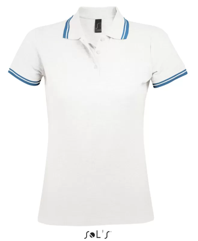 Sols Pasadena Ženska majica sa kragnom vel. S White/Aqua 00578
