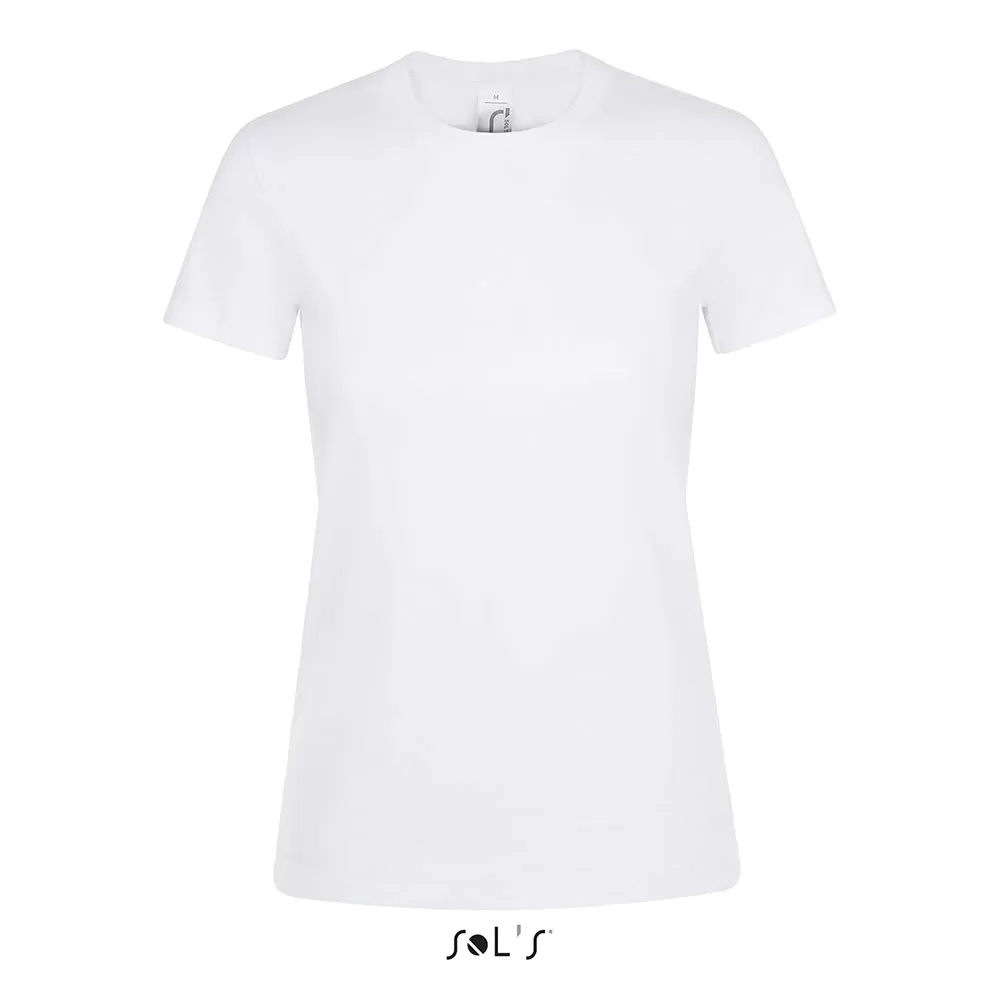 Sols Ženska majca Model: Regent Women Boja: bela Veličina: XXL (dužina od ramena do donjeg šava 69cm, širina između rukava, preko grudi, u predelu pazuha 53cm) Materijal: 150 JERSEY, 100% semi-combed Ringspun cotton (polučešljani ringspun pamuk) Sečena i šivena Prati liniju tela Kratki rukavi Ojačana trakom oko vrata Elastična ranfla oko vrata Dupli štep na dnu i rukavima Održavati prema uputstvu sa etikete
