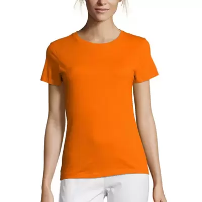 Klasična, jednobojna ženska majca kratkih rukava, prati liniju tela, šivena je od pamučnog žerseja, i to polučešljanog ringspun pamuka, koji je mekši...