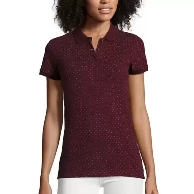 Ženska majica sa kragnom i izrezom sa dugmićima, trendi stila, prati liniju tela, dezen na tufnice. Šivena od 100% češljanog pamuka, dugotrajnijeg i...