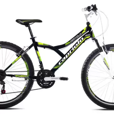 Mountain bike crno-žute boje sa ramom od 13 inča, 18 brzina i točkovima od 24 inča. Napravljen je od kvalitetnih, izdržljivih komponenti kako bi na...