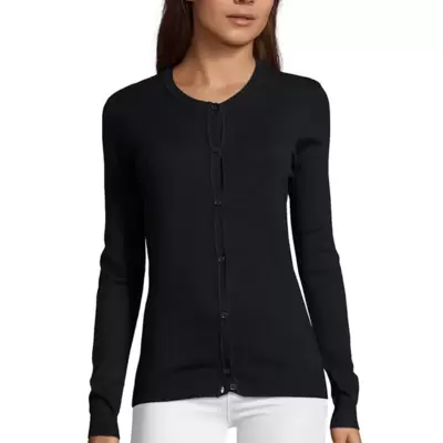 Klasičan ženski džemper na zakopčavanje i sa okruglim izrezom, deo garderobe za sve prilike i sva vremena. Prati liniju tela, ranfle na rukavima i...