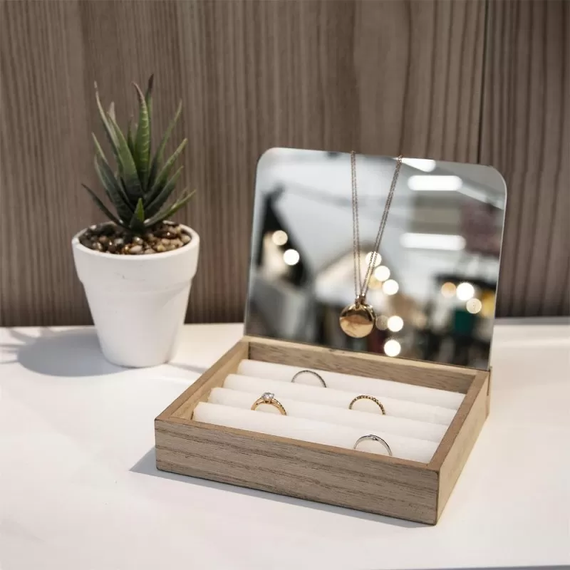 Drvena kutija za prstenje sa ogledalom