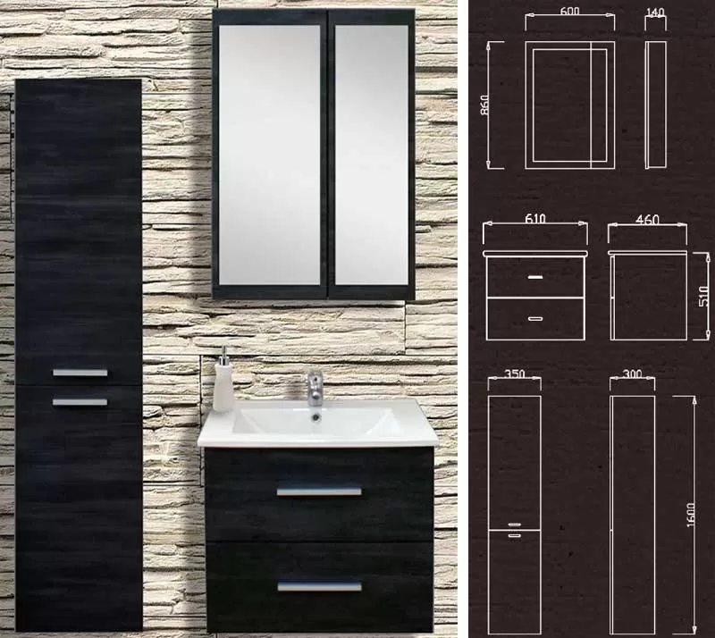 Kupatilski set Bold 600 sa umivaonikom, ogledalom i ormarićem