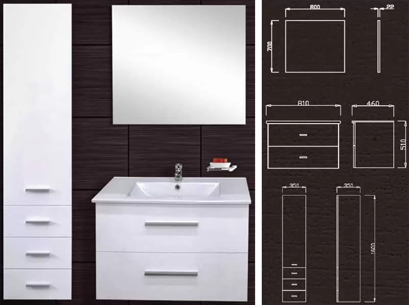 Kupatilski set Venera 800 sa umivaonikom, ogledalom i ormarićem