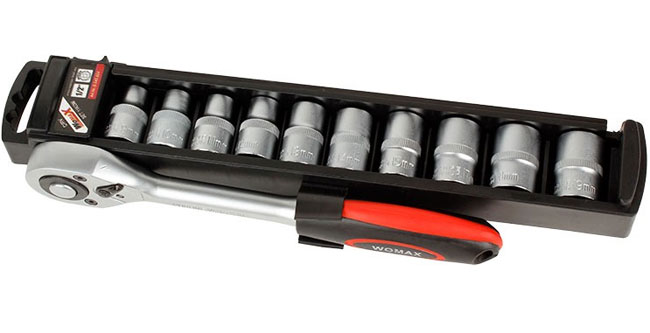 Garnitura nasadnih ključeva sa prihvatom od 1/4 inča. U setu se nalaze ključevi veličine 5, 6, 7, 8, 9, 10, 11, 12 i 13, kao i odgovarajuća račna.