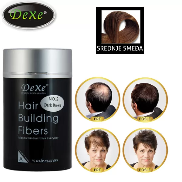 - Preparat za proređenu kosu Dexe Hair Building Fibers 22g tamno smeđa - 2990 RSD