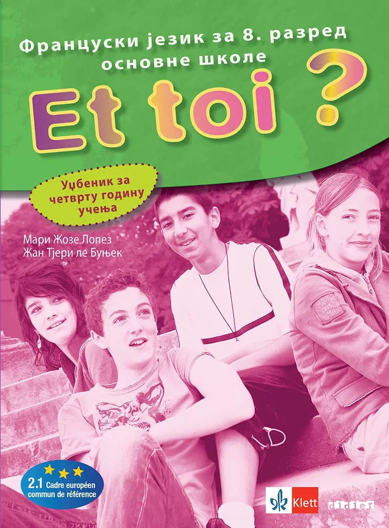 Et toi? 4 - udžbenik i CD za francuski jezik za osmi razred osnovne škole, izdavač Klett. Autori: Žan Tjeri le Bunjek, Mari Žoze Lopez.